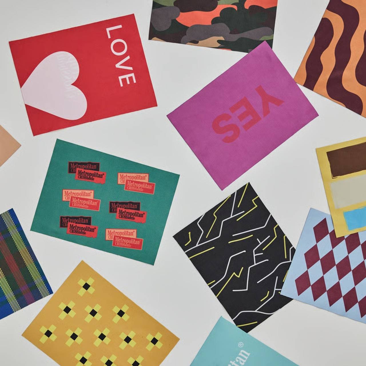 一方で「flavor」シリーズでは、その独特の小さなサイズを生かし、あえてシンプルで印象的な配色や、幾何学模様、テキストデザインといった作品が展開されてきた。ミニマルながらも強い存在感を放つクロスとして、注目を集めている。