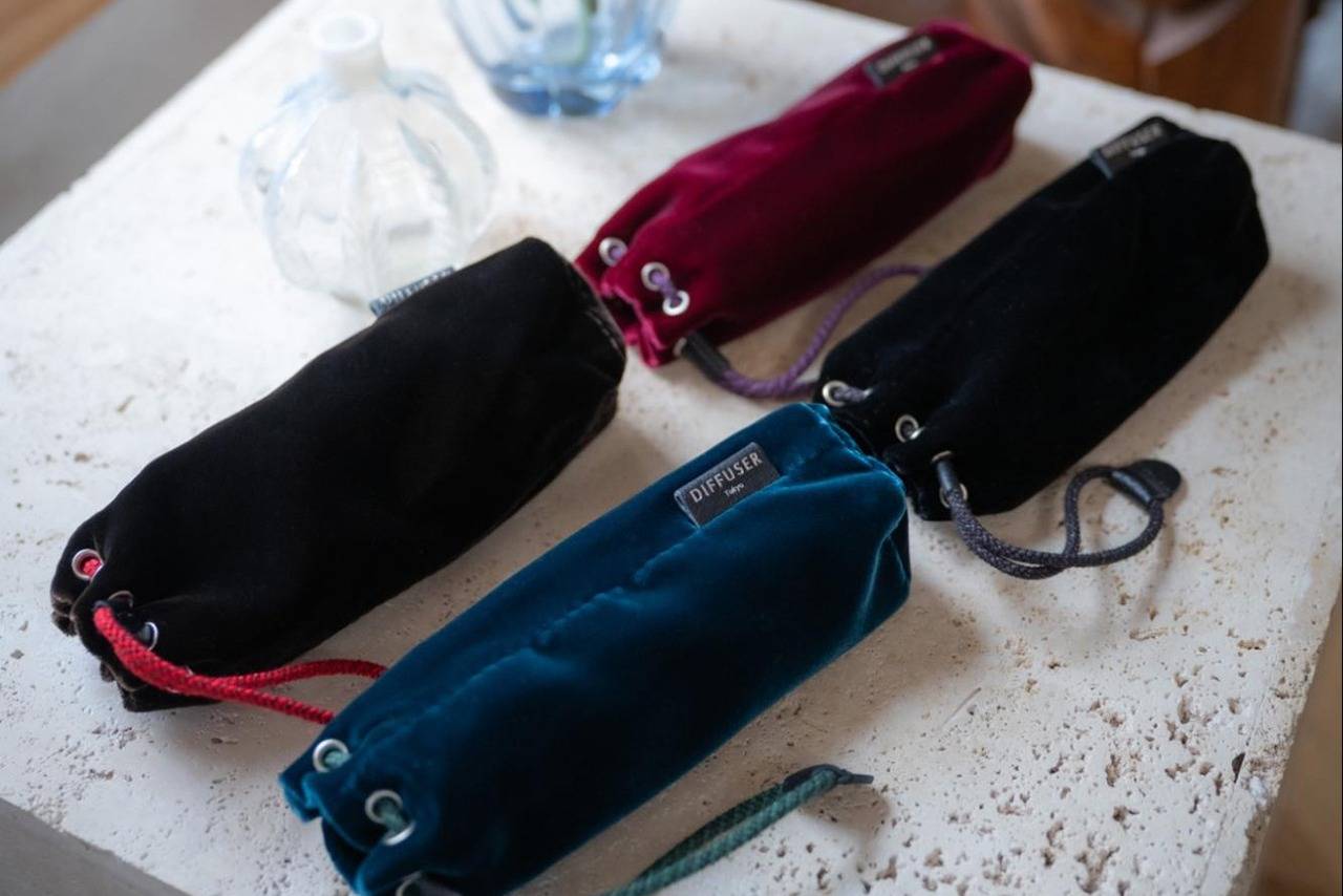 DIFFUSERが今作「PLUSH VELVET EYEWEAR POUCH」に選んだのは、世界的にも有名な日本製ベルベット「アゲハラベルベット」。きめ細かい毛足、均一な密度、手に吸い付くような滑らかさ。これらは“日本のテキスタイル技術”が生む丁寧な質感である。同じ色で比べてみると、国産ベルベットにはより奥行きがあることを感じられるだろう。