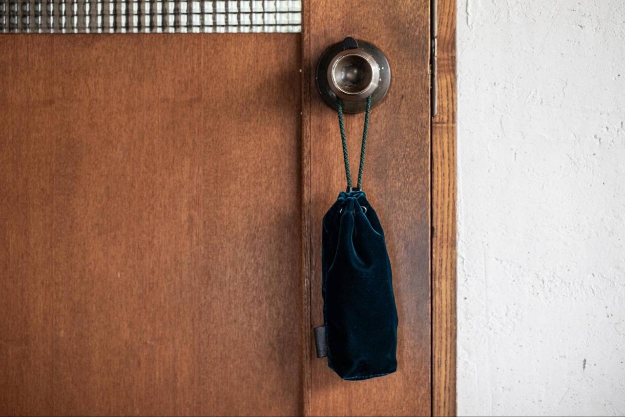 ちなみに、本作ではベルベット以外にもこだわりの素材がもう一つ。巾着の口を閉じるコードにつけられたパーツと、ブランドタグに用いられる、イタリアンカウレザーだ。使い手のためだけに用意された、素材のコントラストとエイジングというささやかな楽しみ。各カラーリングの面白さとともに、そんな細部にも注目していただきたい。