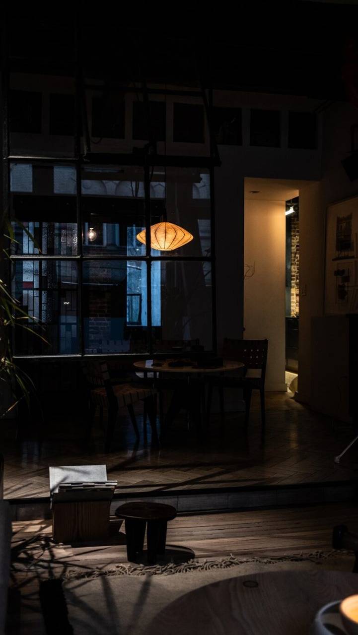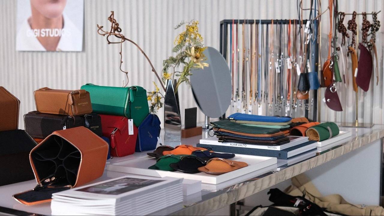 柔らかな自然光が窓から差し込み、ヴィンテージの家具や壁の質感がプロダクトと重なる。今シーズンのDIFFUSERは、過去の作品を再解釈しアップデートさせたモデルも多い。時を吸い込んだこの空間は、今のDIFFUSERが提案する、時を経たからこその表現と、見事に調和したと言えるだろう。