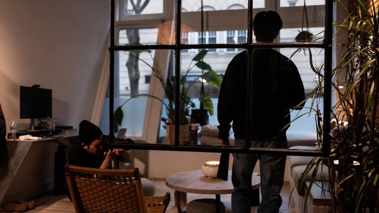 かつては工業地帯でありながら、現在は代官山を思わせる洗練された静謐さが漂うこの街。赤煉瓦の建物と石畳が続く街並みの一角にある、実際に人が暮らしているアパートメントの一室を借り切って、新シーズンのルック撮影を敢行した。